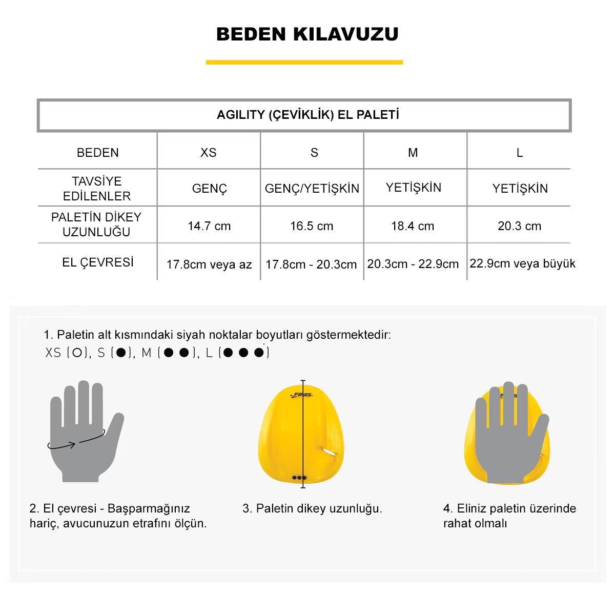 Çeviklik (Agility) El Paleti, yüzücülere anında vuruş geri bildirimi sağlamak için tasarlanmıştır - sadece bir turdan sonra bile! Artık yüzme öğrenenlerden triatlonculara kadar tüm yüzücüler için harika olan yeni bir yüzen malzemeden üretilmiştir. Kayışsız tasarımı, elinizin doğal kıvrımına uyum sağlar ve vuruşunuz boyunca pozitif basınç uygulamayı öğretir. Doğru vuruşu yapmazsanız, palet kayarak veya düşerek bunu size bildirir. Bu basit palet, tekniğinizin farkında olmanızı, gücünüzü artırmanızı ve suya olan hissinizi geliştirmenizi sağlar.